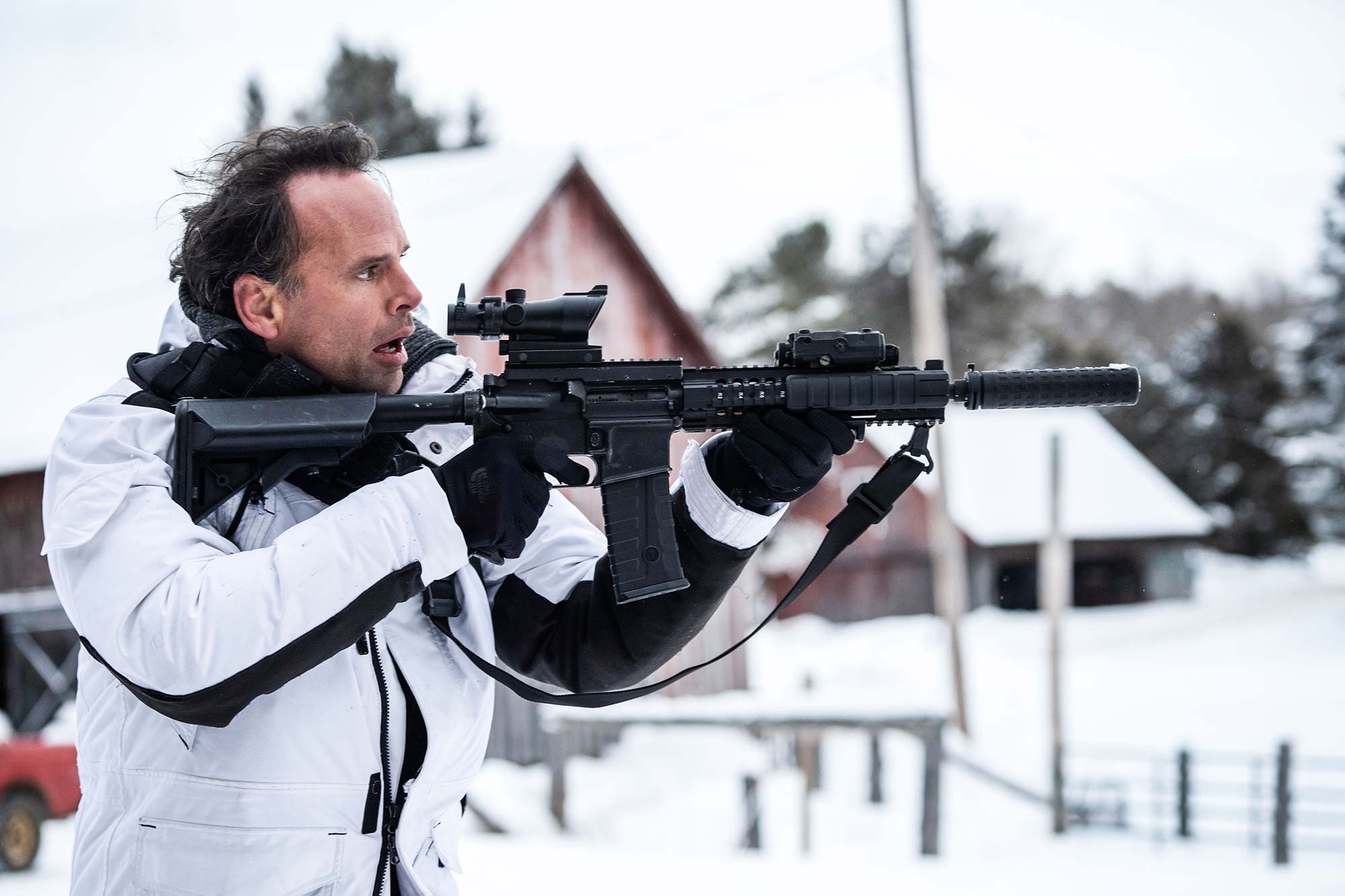 FATMAN musste also erst einmal hinten anstehen, die Brüder bekamen mit anderen Filmen einen Fuß in die Filmindustrie-Tür, versammelten eine zunehmend große Gruppe an Schauspielern um sich. Der entscheidende Wendepunkt dann passierte 2016, als Eshom und Ian eine Vorführung von ,,Hacksaw Ridge" mit Regisseur Mel Gibson als Stargast besuchten. ,,Er hatte da diesen unglaublichen Bart", erinnern sich die Nelms-Brüder, ,,weil er gerade ,The Professor and the Madman' drehte, mit Sean Penn. Wir sahen ihn an und dachten sofort: ,Das ist er, Chris!'" Über einen ihrer ausführenden Produzenten erreichte das FATMAN-Drehbuch schließlich Jack Whigham, Mel Gibsons Agenten.